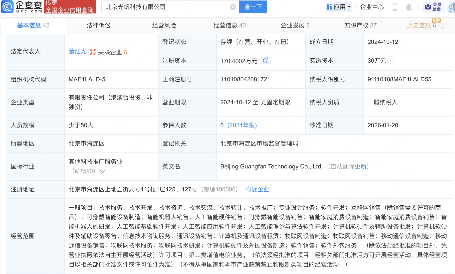 企查查APP显示,近日,北京光帆科技有限公司发生工商变更,新增联想(北京)有限公司等为股东,同时注册资本增至170.4万元。企查查信息显示,该公司成立于2024年,经营范围包含:智能机器人的研发;人工智能基础软件开发;人工智能应用软件开发;人工智能理论与算法软件开发等。据其官网,光帆科技是一家专注于下一代人机交互的科技创新企业,致力于多模态直接意图表达的交互范式革新。