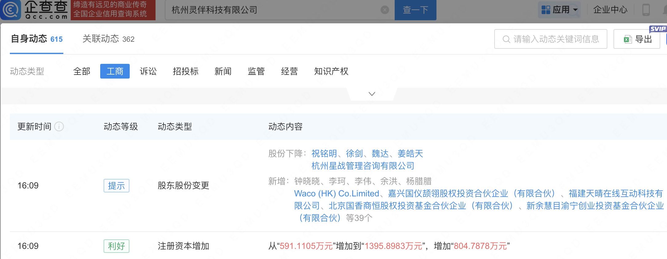 企查查APP显示,近日,杭州灵伴科技有限公司发生工商变更,新增蓝思科技(300433)、三星医疗(601567)、精智达(688627)、山水比德(300844)等为股东,同时注册资本增至1395.9万元。企查查信息显示,该公司成立于2014年,经营范围包含:电子产品销售;人工智能硬件销售;智能机器人销售;可穿戴智能设备销售等。据其官网,灵伴科技是一家专注于人机交互技术的产品平台公司。