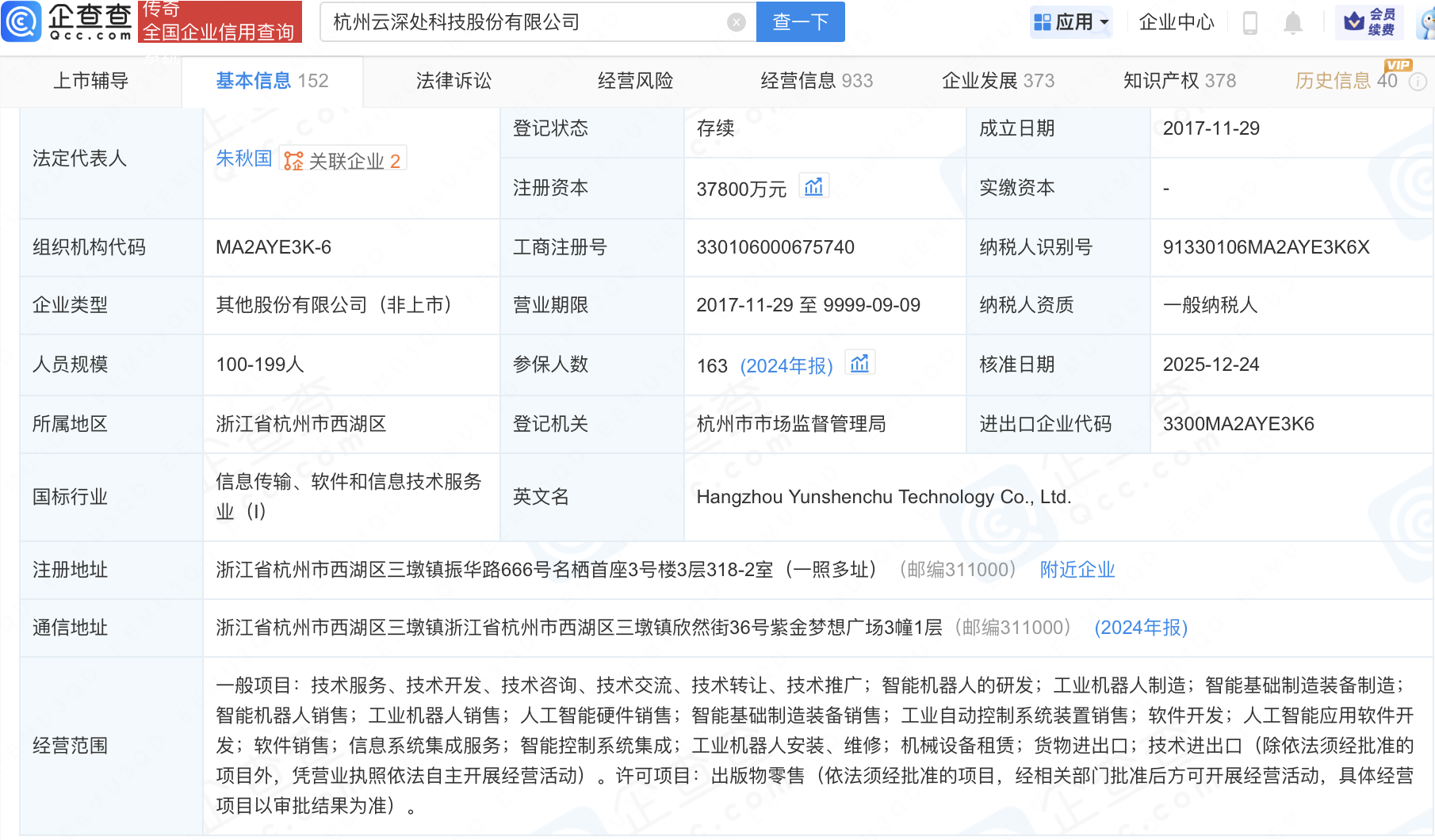 企查查APP显示,近日,中国电建华东院沙特REPDO 4 1100MWac AHK光伏项目巡检机器人设备采购项目成交结果公示,中标单位为杭州云深处科技股份有限公司。企查查信息显示,该公司成立于2017年,经营范围包含:人工智能硬件销售;智能基础制造装备销售;工业自动控制系统装置销售等。据悉,杭州云深处科技(DEEP Robotics)是具身智能技术创新与行业应用引领者,也是全球首家围绕电力巡检行业应用的智能四足机器人企业,在中国率先实现四足机器人全自主巡检变电站。