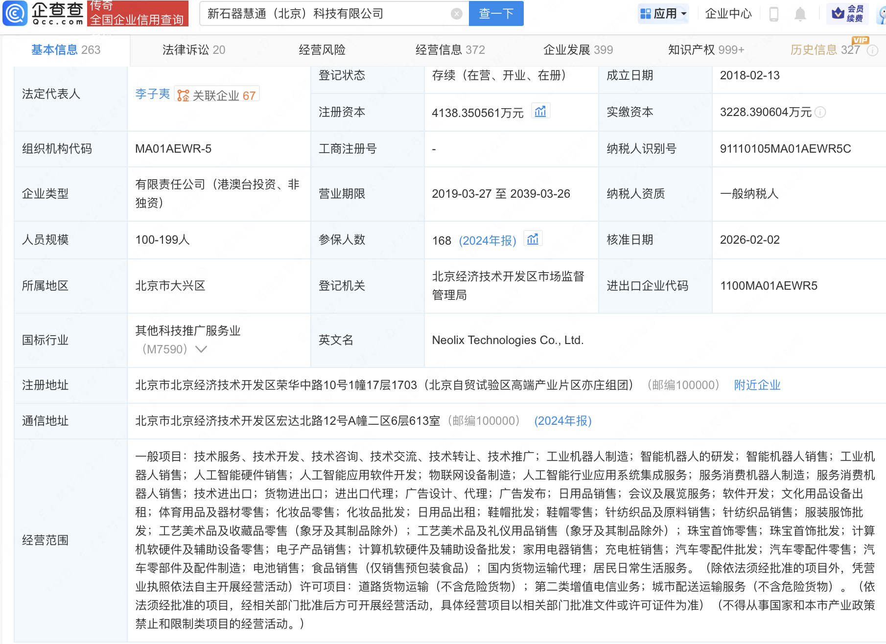 企查查APP显示,近日,新石器无人车关联公司新石器慧通(北京)科技有限公司发生工商变更,新增广西腾讯创业投资有限公司等为股东。企查查信息显示,该公司成立于2018年,经营范围包含:智能机器人的研发;智能机器人销售;工业机器人销售;人工智能硬件销售;人工智能应用软件开发等。公开信息显示,新石器专注于将L4级无人驾驶应用于物流场景,尤其是城市配送场景。