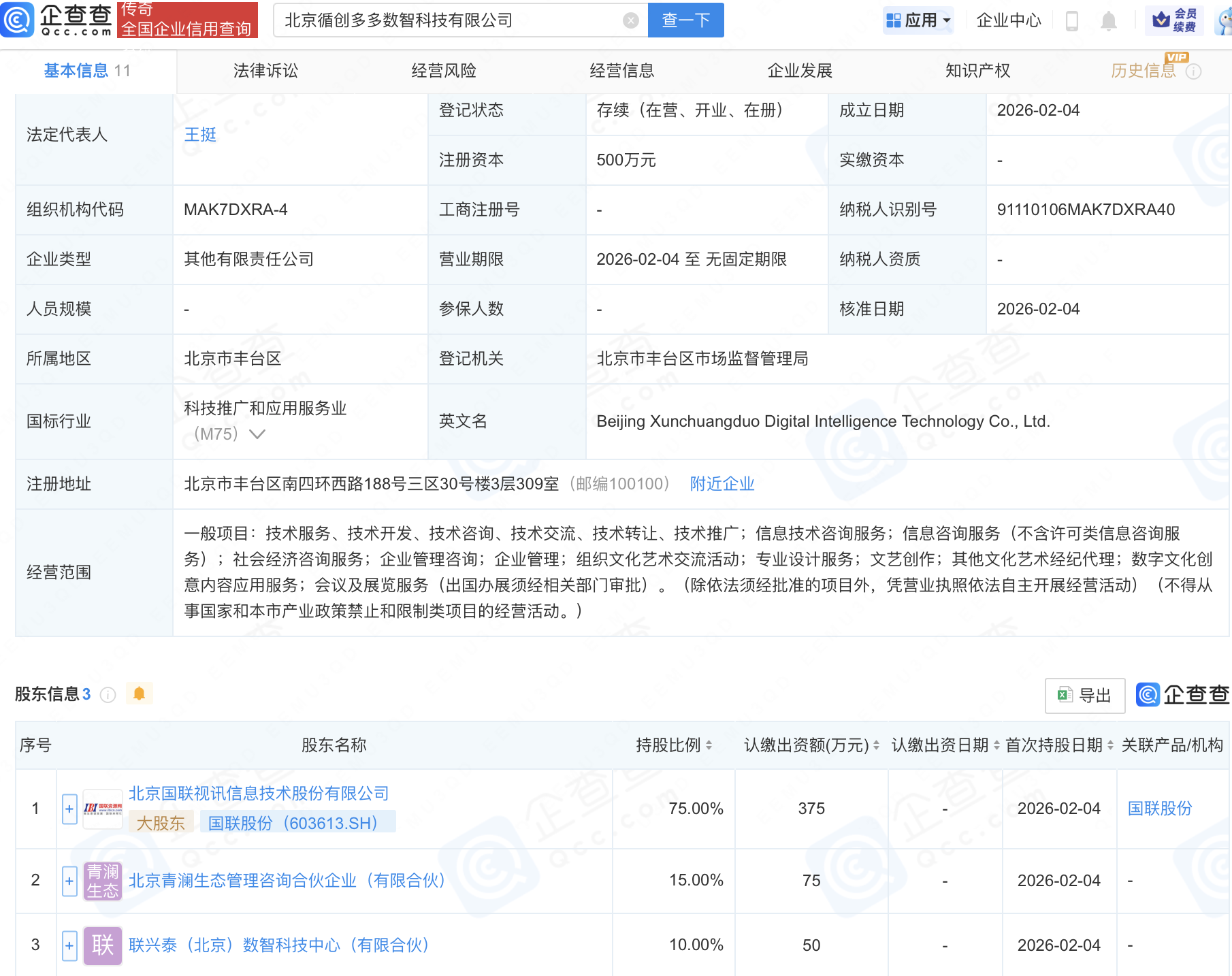 国联股份等在北京成立数智科技新公司
