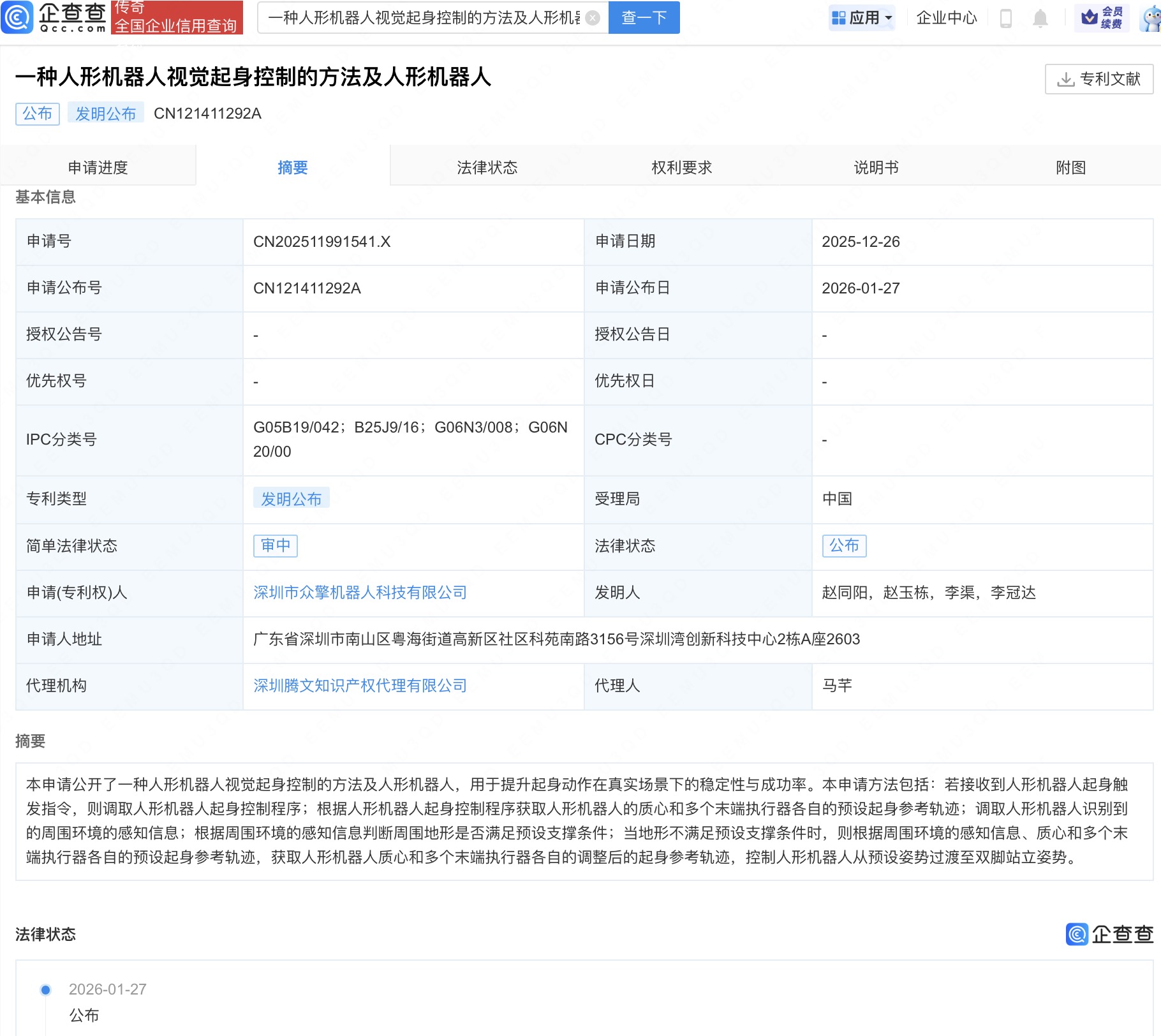 众擎机器人公布人形机器人视觉起身控制相关专利