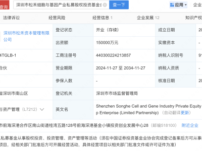 信立泰、热景生物入股松禾细胞与基因产业私募基金