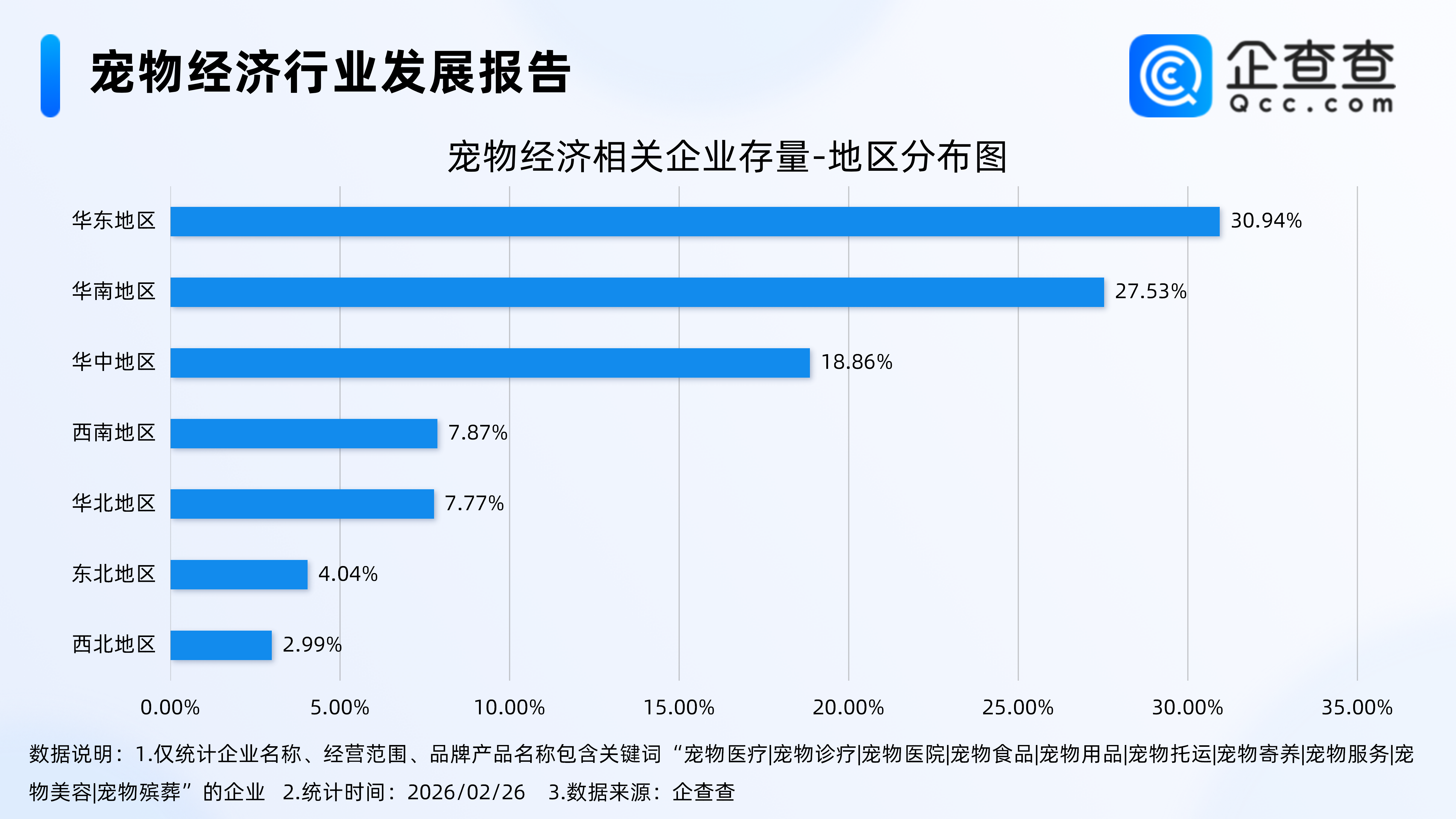 企查查数据显示,从地区分布来看,宠物经济相关企业多分布在华东地区和华南地区,分别占比30.94%、27.53%。其次,分布在华中地区的相关企业占比18.86%。其他地区占比均不足10%。