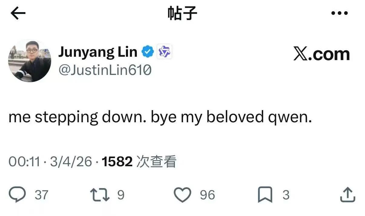 阿里巴巴集团通义千问大模型核心技术负责人林俊旸近日在社交平台X发布动态,宣布将卸任千问项目技术负责人职务。这一变动引发业界对阿里AI团队调整的广泛关注,目前其具体去向尚未明确,是否继续留任阿里体系仍需进一步确认。