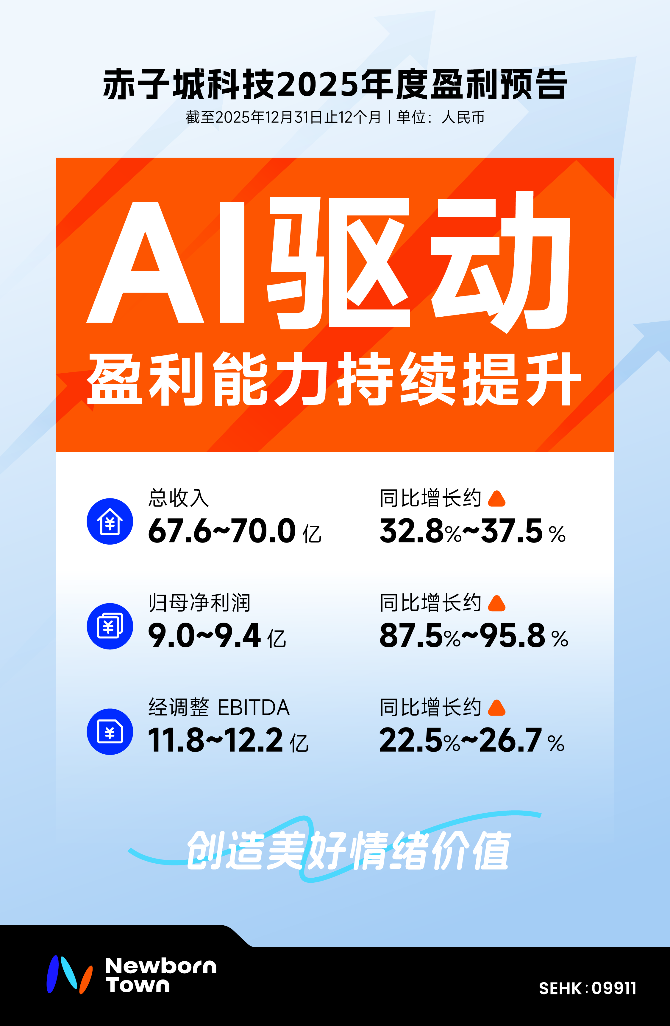 赤子城科技(09911.HK)近日发布2025年度财务预告,显示公司全年业绩实现显著突破。根据公告,截至2025年12月31日,公司总收入预计达67.6亿至70亿元人民币,同比增长32.8%至37.5%;归母净利润预计为9亿至9.4亿元,增幅达87.5%至95.8%;经调整EBITDA约为11.8亿至12.2亿元,同比增长22.5%至26.7%。这一成绩单标志着公司在全球化布局中迈入新阶段。