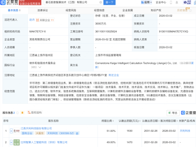 企查查APP显示,近日,无锡柯西智能装备有限公司成立,注册资本3000万元,经营范围包含:智能机器人的研发;智能机器人销售;工业机器人制造;人工智能基础资源与技术平台;人工智能基础软件开发等。企查查股权穿透显示,该公司由翰博高新(301321)等共同持股。
