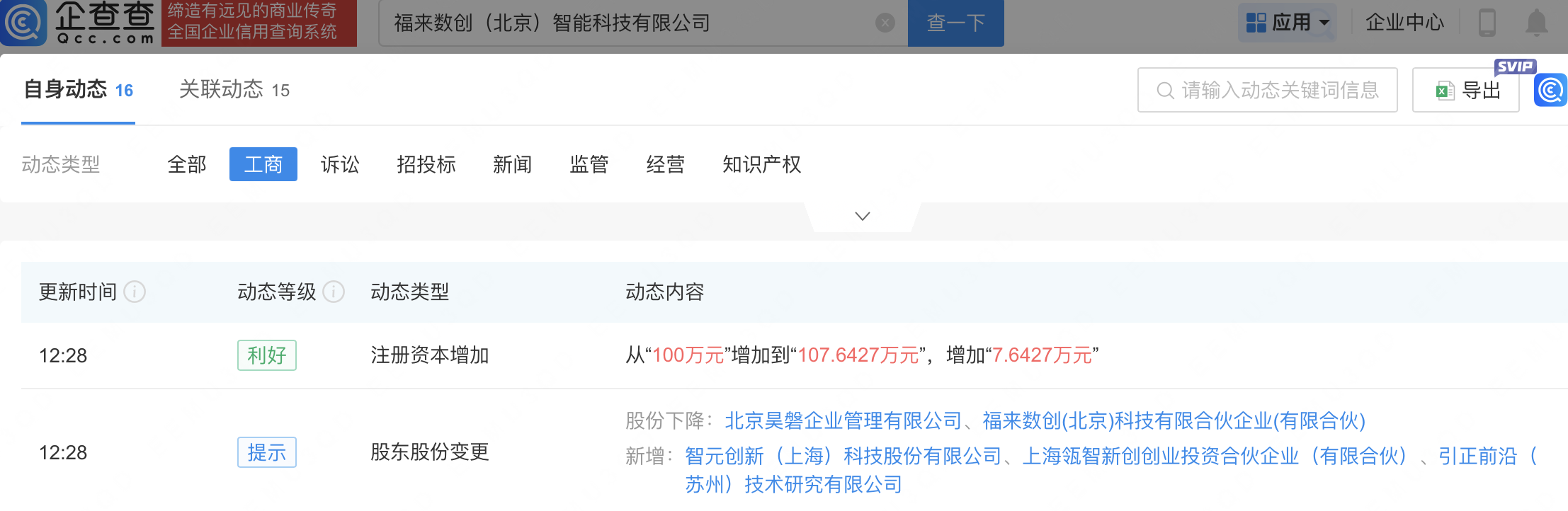 企查查APP显示,近日,福来数创(北京)智能科技有限公司发生工商变更,新增智元机器人关联公司智元创新(上海)科技股份有限公司等为股东,同时注册资本增至107.64万元。企查查信息显示,该公司成立于2025年3月,经营范围包含:人工智能基础软件开发;人工智能应用软件开发;人工智能理论与算法软件开发;人工智能行业应用系统集成服务等。公开信息显示,福来数创是一家人工智能初创企业。