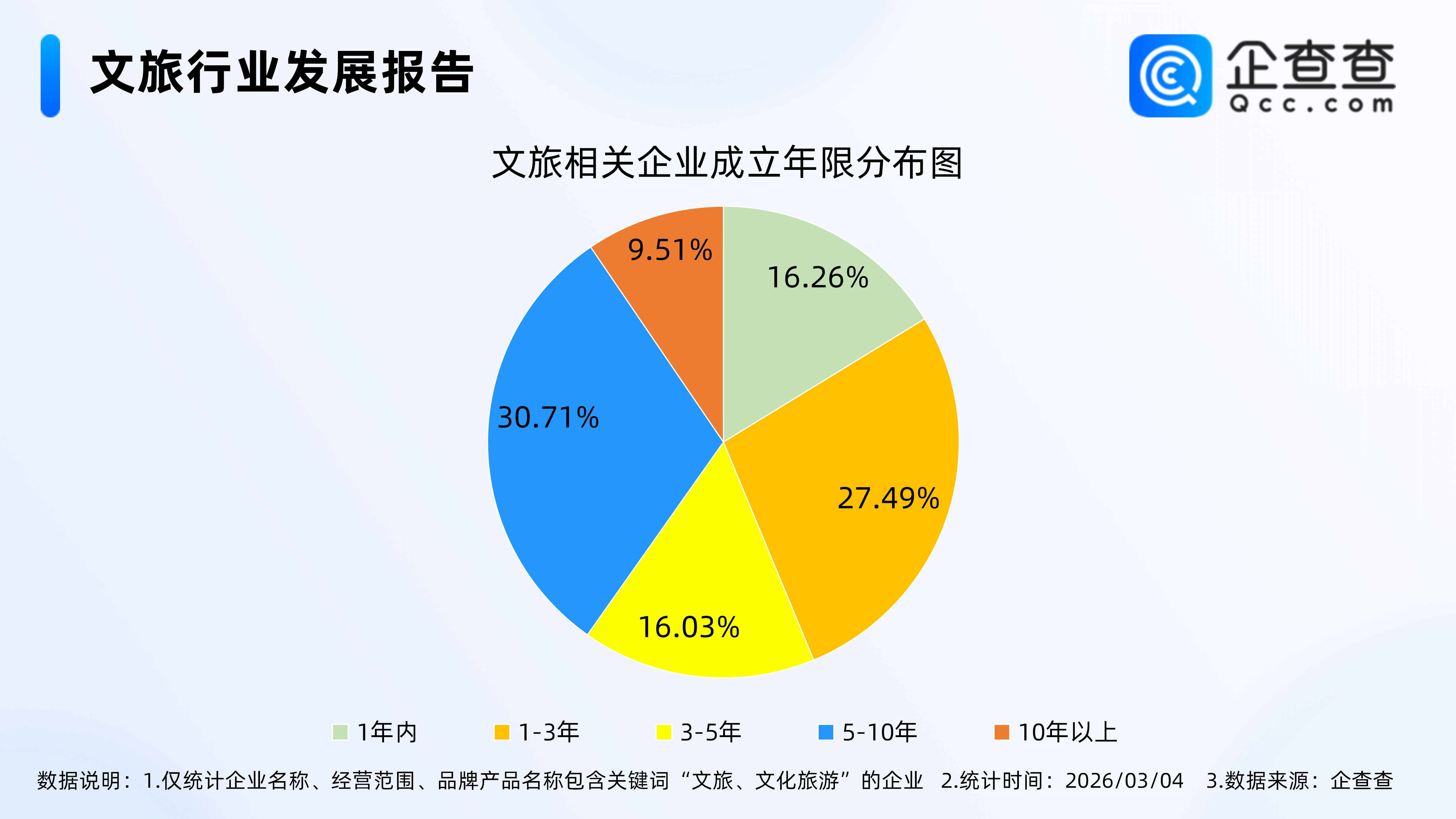 2.成立年限在5-10年的文旅相关企业最多