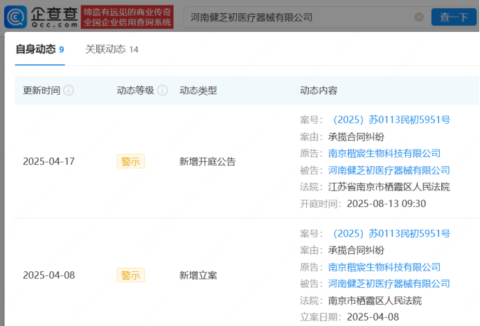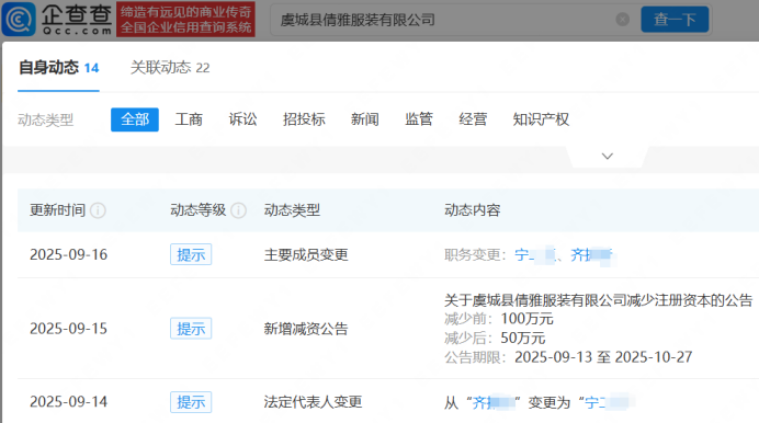 企查查风险信息显示,当前商丘市梦阳服饰有限公司、商丘医笙宁医疗科技有限公司已被列入经营异常,河南健芝初医疗器械有限公司因承揽合同纠纷被起诉,虞城县倩雅服装有限公司法定代表人变更,并发布减资公告,由100万元人民币减至50万元人民币。