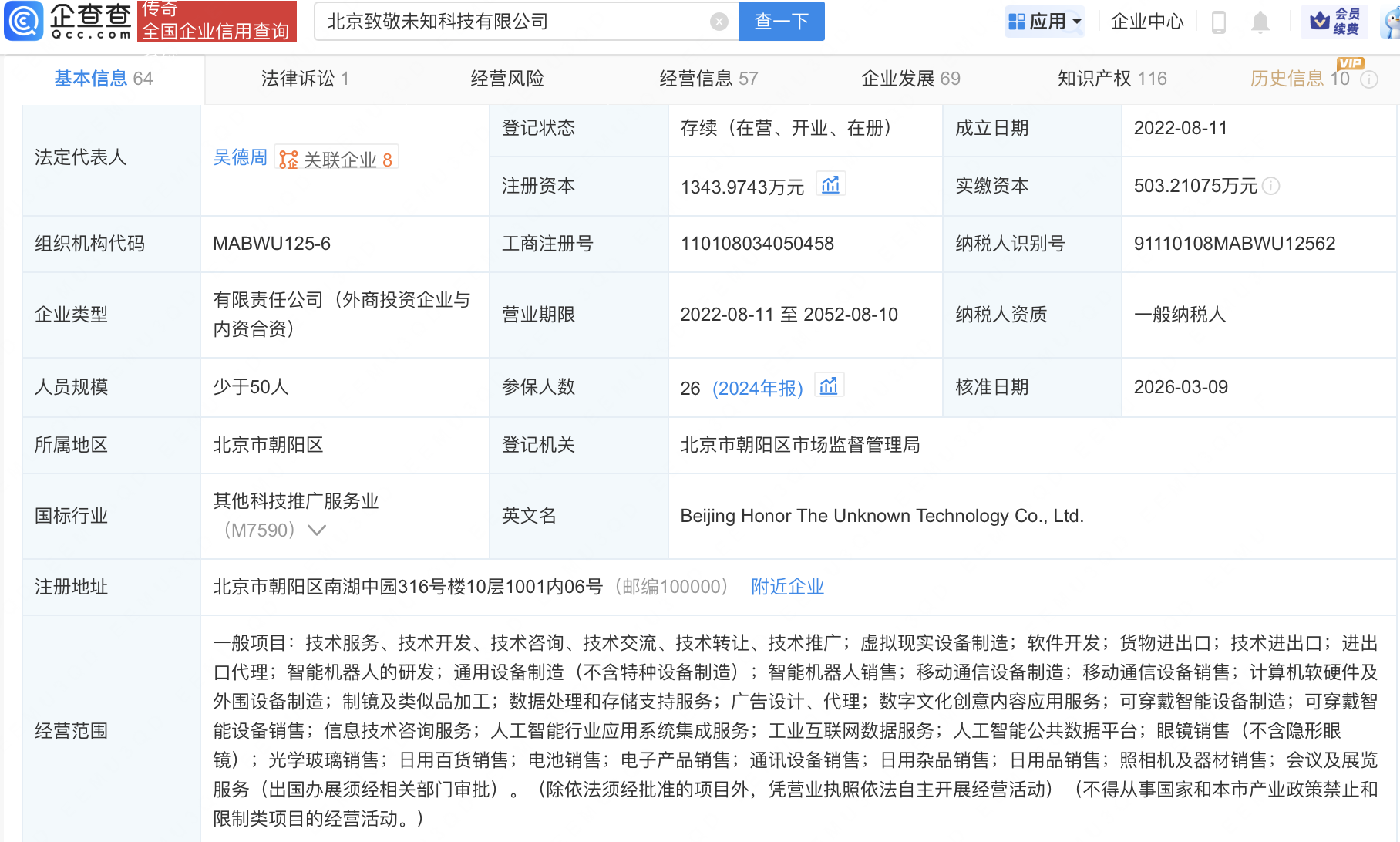 企查查APP显示,近日,北京致敬未知科技有限公司发生工商变更,新增联想(北京)有限公司等为股东,同时注册资本增至1343.97万元。企查查信息显示,该公司成立于2022年,经营范围包含:虚拟现实设备制造;智能机器人的研发;可穿戴智能设备制造;人工智能公共数据平台等。据其官网,该公司将AR全方位融入现实生活,致力打造可穿戴出门,能日常使用的消费级AR眼镜。