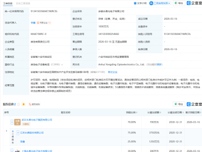企查查APP显示,近日,深圳市艾格数字能源科技有限公司成立,法定代表人为柏建国,注册资本为1亿元,经营范围包含:配电开关控制设备制造;输配电及控制设备制造;机械电气设备销售;通信设备销售等。企查查股权穿透显示,该公司由优优绿能(301590)、深圳市厚启投资合伙企业(有限合伙)等共同持股。