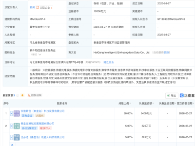 企查查APP显示,近日,南京诚智汉联科技有限公司成立,经营范围包含:人工智能基础软件开发;人工智能应用软件开发;人工智能理论与算法软件开发;人工智能行业应用系统集成服务等。企查查股权穿透显示,该公司由诚迈科技(300598)全资子公司江苏诚迈信息科技有限公司等共同持股。