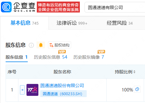 企查查APP显示,近日,圆通速递有限公司对外投资成立多家运输公司,包括金华圆隼运输有限公司、台州圆隼运输有限公司、桐庐圆翔运输有限公司等,企查查股权穿透显示,新成立公司均由圆通速递(600233)间接全资持股。