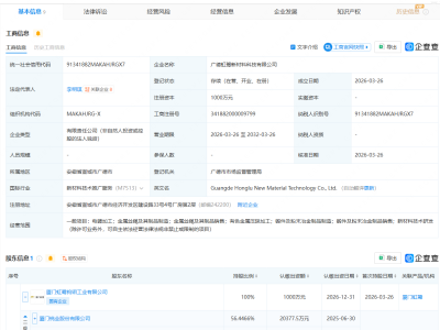 企查查APP显示,近日,扬州海螺筑润新材料有限责任公司成立,注册资本3000万元,经营范围包含:新材料技术推广服务;新材料技术研发;水泥制品制造;水泥制品销售等。企查查股权穿透显示,该公司由海螺水泥(600585)间接全资持股。