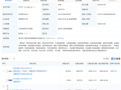 企查查APP显示,近日,上海天赋星际能源科技有限公司成立,法定代表人为陈奕峰,注册资本为1亿元,经营范围包含:新兴能源技术研发;电子专用材料研发;太阳能发电技术服务;储能技术服务;新材料技术研发等。企查查股权穿透显示,该公司由天合光能(688599)旗下天合光能(常州)科技有限公司、天合星元(浙江)企业管理咨询有限公司、常州星曜企业管理合伙企业(有限合伙)共同持股。
