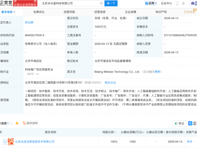 企查查显示,该公司成立于2018年12月,法定代表人为刘国昌,经营范围包含:火箭发动机研发与制造;民用航天发射技术服务;火箭控制系统研发等,由星际荣耀航天科技集团股份有限公司全资持股。