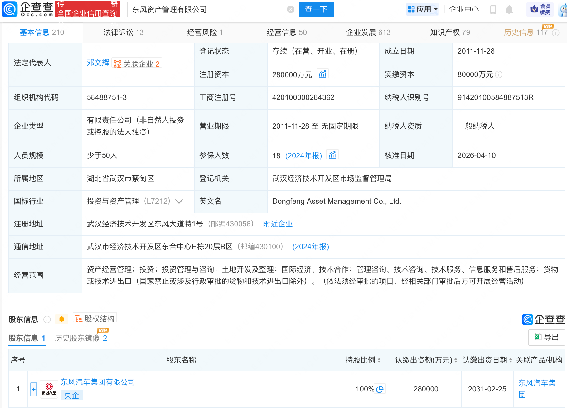 东风汽车旗下资管公司增资至28亿,增幅250%