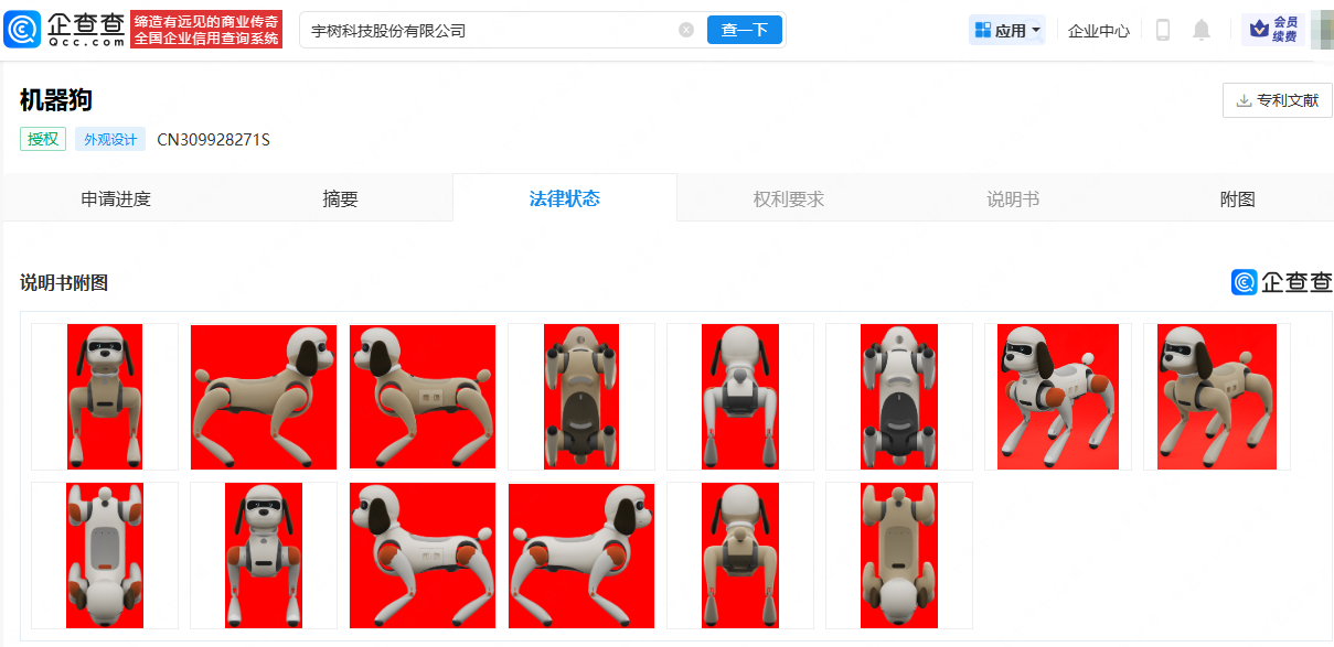 企查查APP显示,近日,宇树科技股份有限公司申请的机器狗专利获授权。专利摘要显示,本外观设计产品的用途:用于服务、搜救、陪护、巡检、教育、导航、摄像、玩具、智能交互、娱乐互动、执行特定任务。