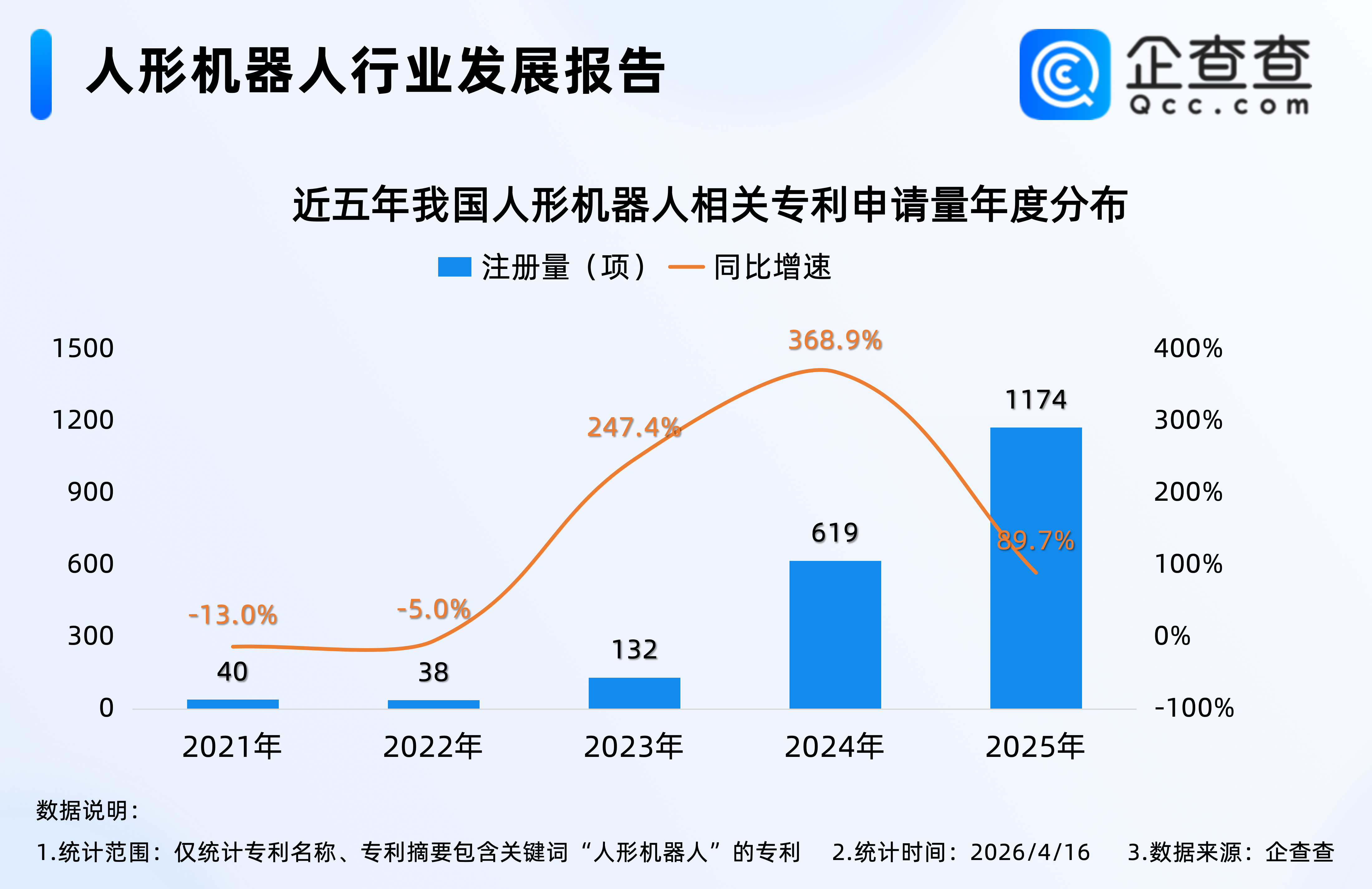 企查查数据显示,我国现有2510项人形机器人相关专利。2024年,我国人形机器人相关专利申请量同比激增368.9%至619项,成为近五年申请量增速最大的一年,2025年全年,我国新增1174项人形机器人相关专利,同比增加89.7%,创近五年申请量新高。