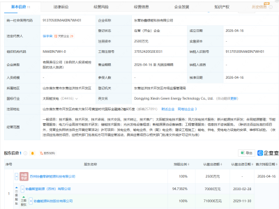 企查查APP显示,近日,肥东县晶园光伏发电有限公司、肥东县晶万光伏发电有限公司成立,法定代表人均为邹志广,经营范围均包含:发电业务、输电业务、供(配)电业务;太阳能发电技术服务;光伏设备及元器件销售等。企查查股权穿透显示,两公司均由晶科科技(601778)间接全资持股。