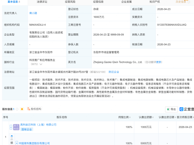 企查查APP显示,近日,浙江康众智能机器人有限公司成立,注册资本1000万元,经营范围包含:智能机器人的研发;智能机器人销售;人工智能硬件销售;人工智能基础软件开发;人工智能理论与算法软件开发等。企查查股权穿透显示,该公司由康众医疗(688607)全资持股。