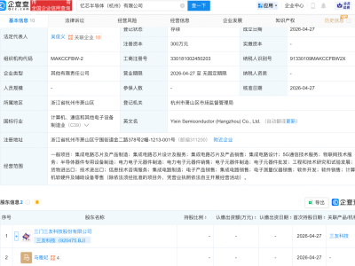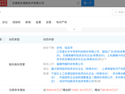 企查查APP显示,近日,江苏敏成芯半导体有限公司成立,注册资本1000万元,经营范围包含:集成电路芯片及产品制造;集成电路芯片及产品销售;半导体器件专用设备制造;半导体器件专用设备销售;电子元器件制造等。企查查股权穿透显示,该公司由敏芯股份(688286)等共同持股。