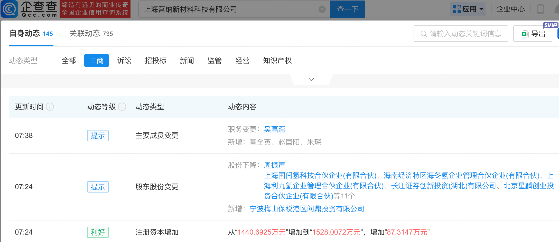 企查查APP显示,近日,上海莒纳新材料科技有限公司发生工商变更,新增宁德时代(300750)全资子公司宁波梅山保税港区问鼎投资有限公司为股东,同时注册资本增至1528万元。企查查信息显示,该公司成立于2019年,经营范围包含:从事新材料科技、新能源科技、环保科技领域内的技术开发、技术转让等。据其官网,该公司聚焦金属电化学材料科技的创新与产业应用,致力于成为绿氢电极技术的领跑者。